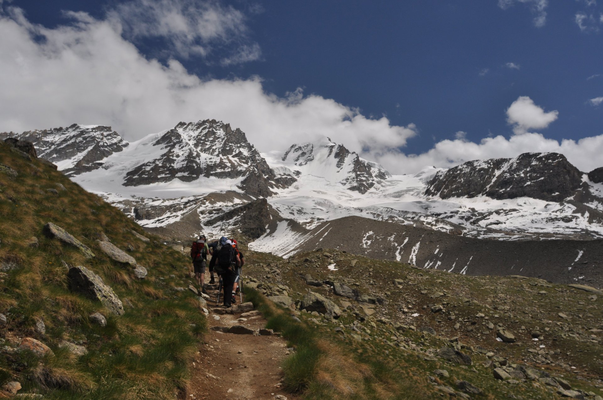 Transfer to the Valsavarenche from Chamonix via the Mont Blanc tunnel. Departure from the hamlet of Pravieux (1,834m) near the village of Pont. The ascent begins with a superb mule track bordered by drystone walls in the heart of a larch forest, which eventually leads us to the Lavassey pasture (2194m). From there, the vegetation gradually disappears to give way to the alpine meadows in the heart of which is the Chabod hut (2,710 m). Night in the refuge.