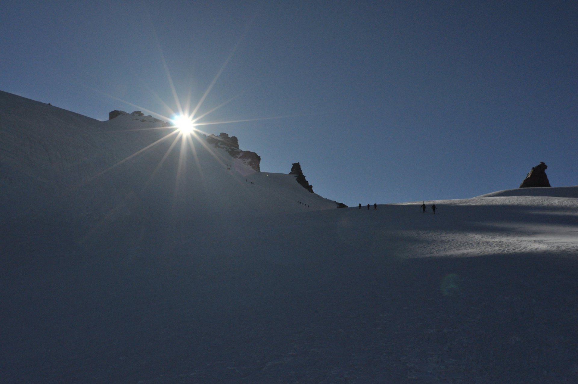 Technical Level : Suitable for occasional mountaineers. The route includes sections requiring prior experience with crampons. A mountaineering basics training is sufficient