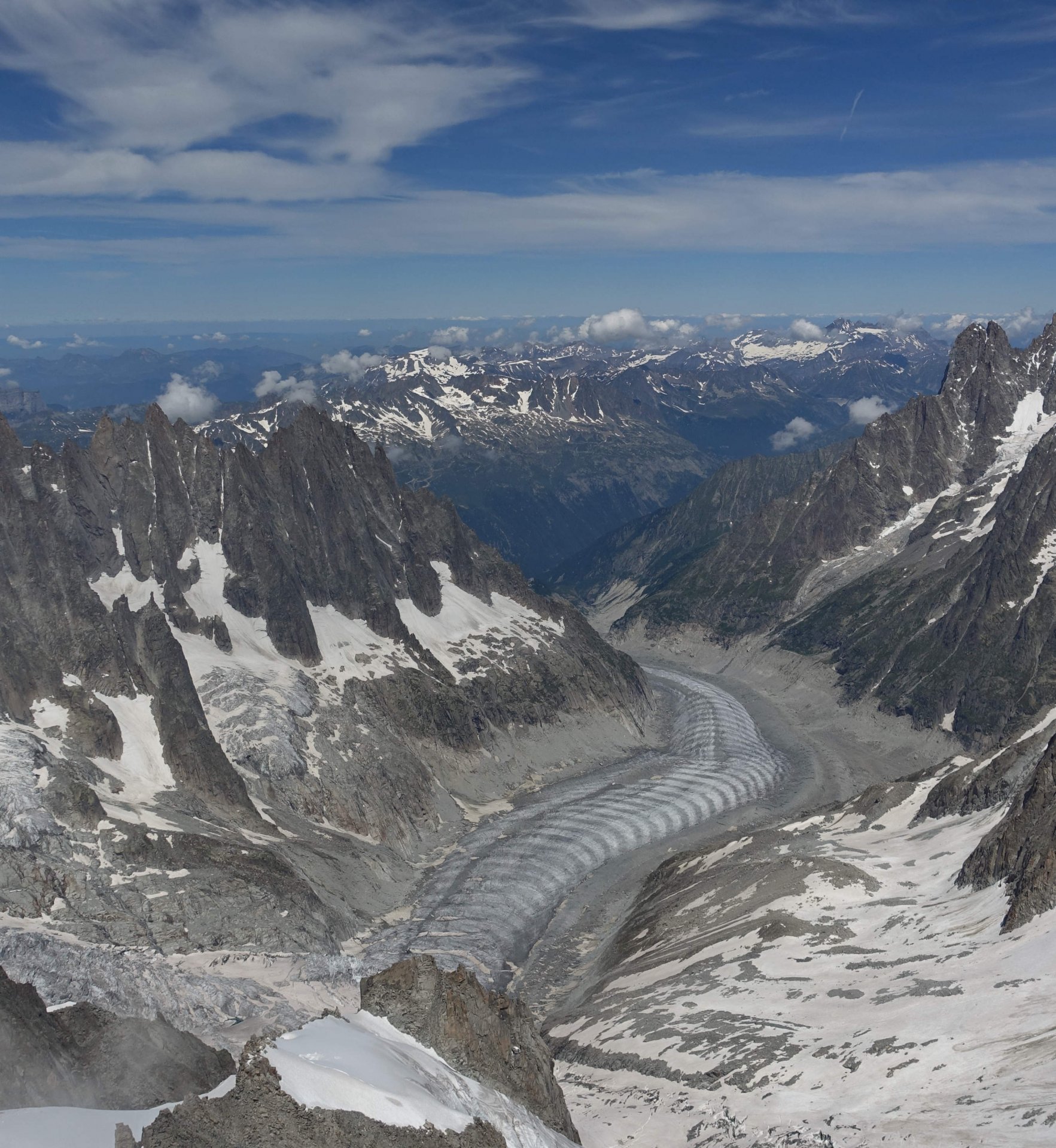 The mountaineering basics is a discovery or a revision of the basic mountaineering techniques and skills: use of crampons and ice axe, elementary knots, walking roped together, roping. It will allow you to acquire or to review the basics essential for your future trips in the mountains. The ice basics on the Mer de Glace is also a great opportunity to learn more about the life of the glaciers (crevasses, moraines) and about global warming in the Alps.