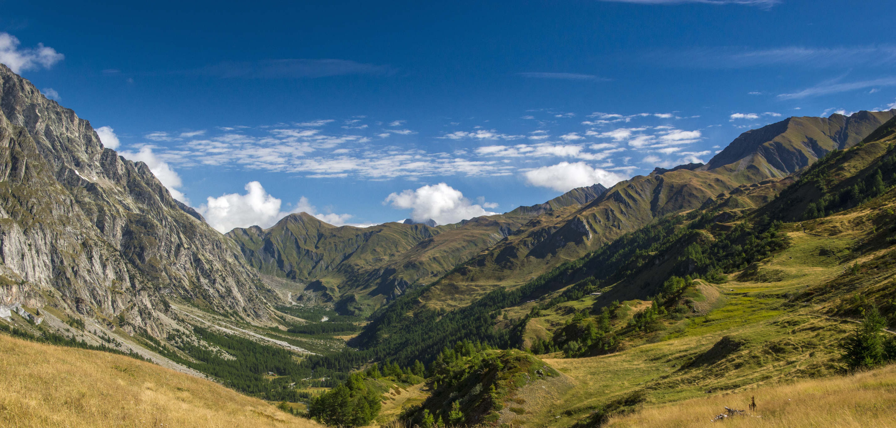 After a good breakfast, we descend to the beautiful town of Courmayeur down to the valley, before switching again to an ascent that takes us to the Bertone refuge, at 1991 metres. We are in front of the magnificent valley of the Italian Val Ferret and the southern side of the Mont Blanc massif. We return to the Bonatti hut, where we will have a refreshing break. The magnificent balcony trail gives us a chance to admire some of the massif's iconic peaks, including the Dent du Géant, the Grandes Jorasses and Mont Dolent. Once we reach Arnuva, we are in front of the imposing Grand Col Ferret. The steep and straightforward ascent takes us to the Italian-Swiss border at the top of the pass at 2537 metres. The descent to the Swiss Val Ferret is smooth and very pleasant all the way to La Fouly. You will have access to your luggage at the hotel where we will spend the night !