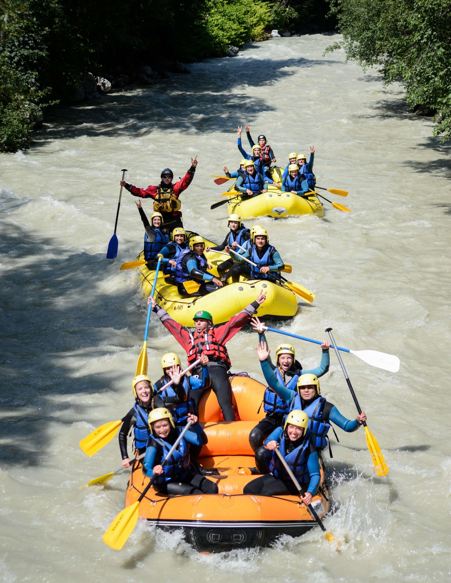 Rendez-vous à la base eau vive - Rafting de la Compagnie des Guides de Chamonix situé en plein centre-ville avec ses douches chaudes et ses vestiaires. Seules conditions pour pratiquer le rafting : être âgé de plus de 10 ans et mesurer plus d’1.30m. Pour une expérience encore plus intense, nous organisons également dans la vallée de Chamonix des descentes raft sportif sur l’Arveyron.