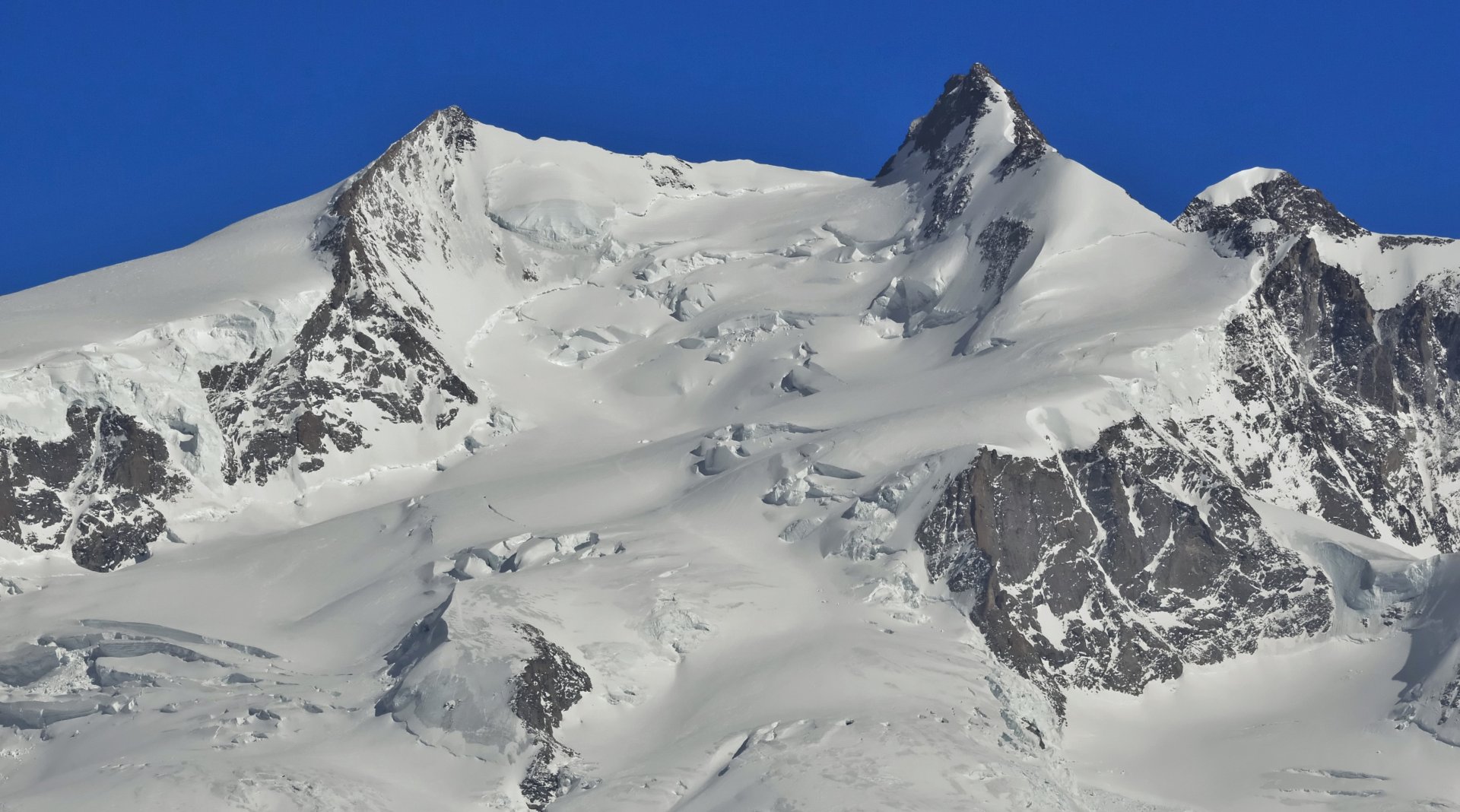 Une première descente nous conduit à Gabiet d'où nous prenons les remontées mécaniques jusqu’à Indren (3 275m). Nous partons ensuite pour le refuge Citta di Mantova (3 500m). Nous y allégeons nos sacs, puis nous prenons la direction de notre premier 4000 : la Pyramide Vincent (4 215m). Le relief en pente douce est taillé pour le ski. Nous redescendons par le même itinéraire au refuge où nous passons la nuit.